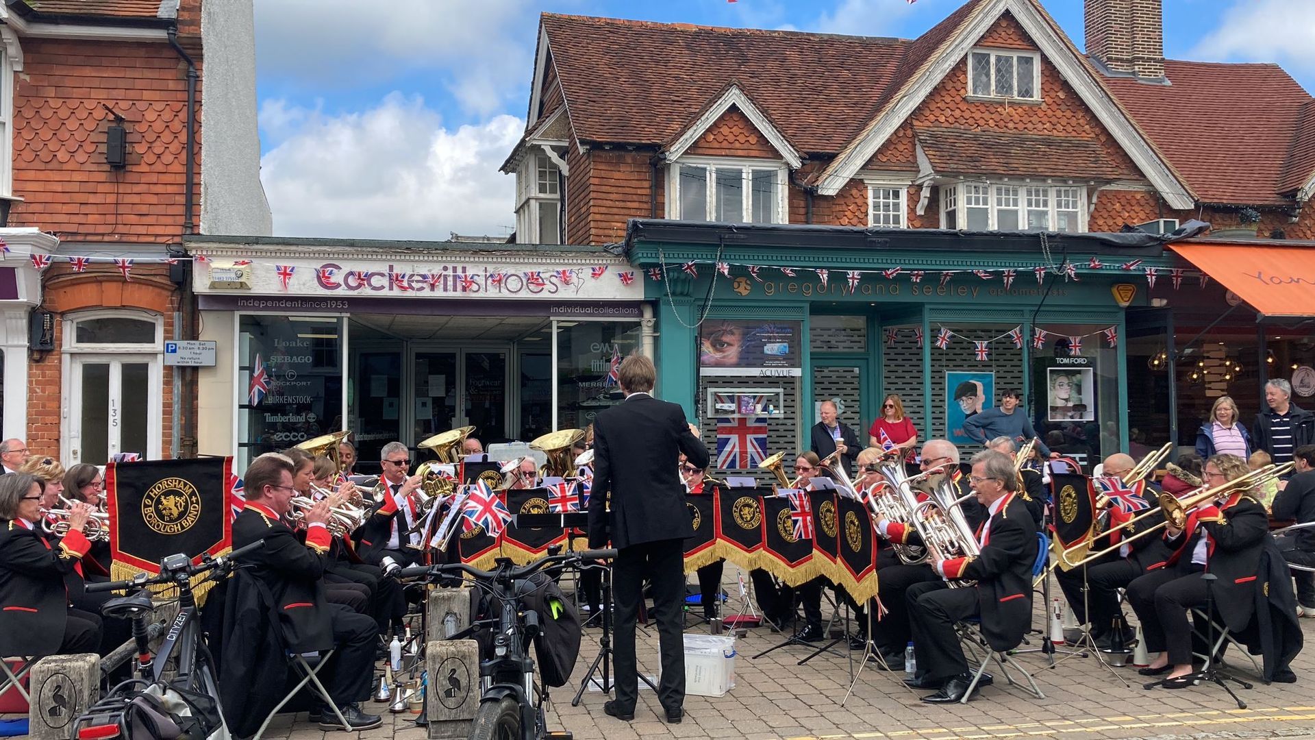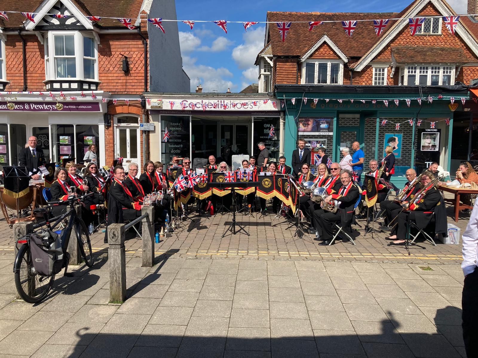 The band was very proud to be part of this weekend of royal celebrations, playing for the Coronation Big Lunch party in Cranleigh - particularly because we had actual royalty in the audience! The Duke and Duchess of Edinburgh were in Cranleigh to join in the celebrations and we managed to time the start of our concert just as they were passing by (with a rousing rendition of God Save the King). The sun was shining, and a great audience was appreciative of our programme, which included solos from Andy (flugel), Gordon (cornet) and Martin (euphonium).